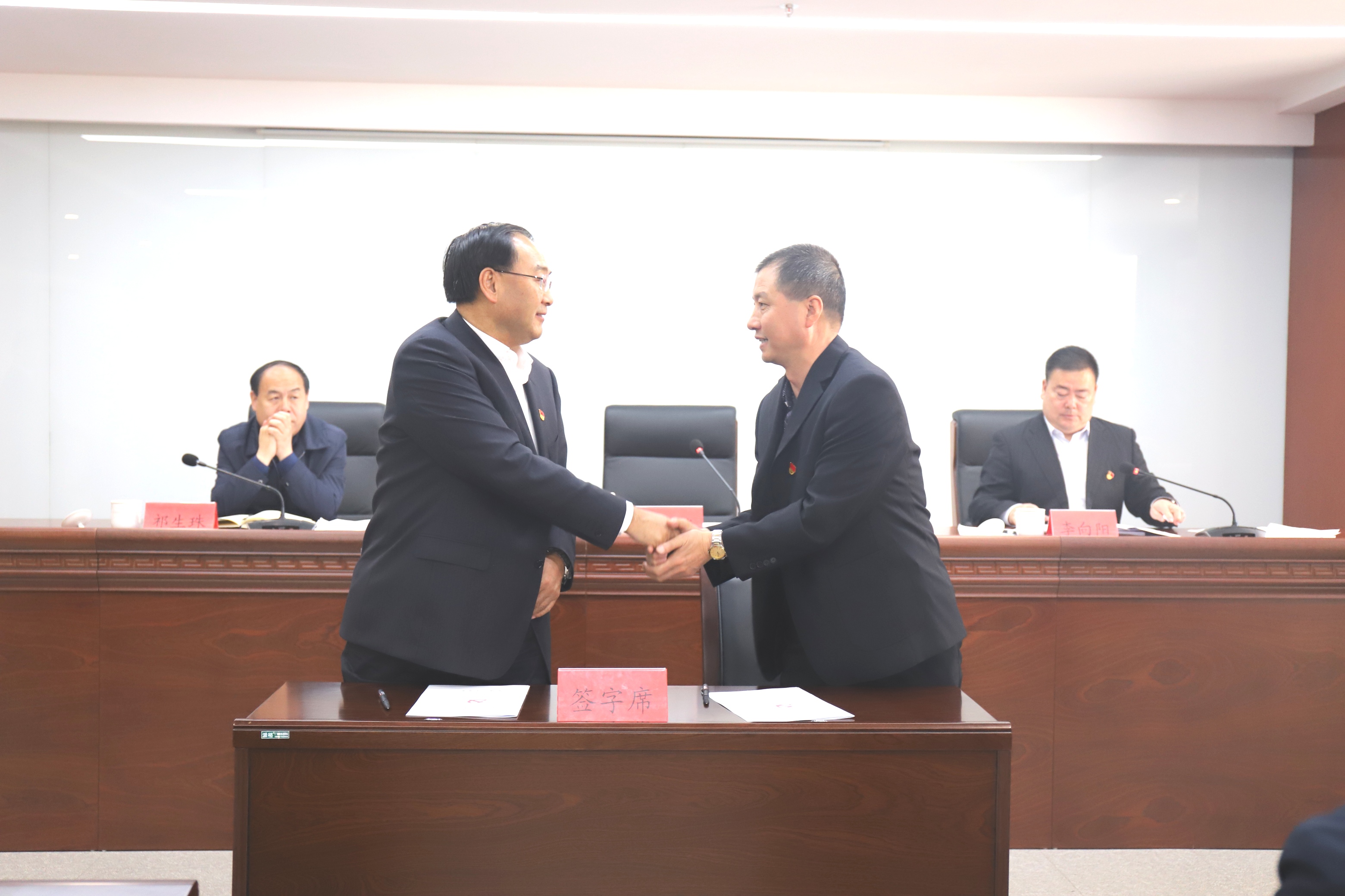 會(huì)議最后,馬榮華同志代表集團(tuán)公司黨委與各二級(jí)黨委(總支)書記簽訂了黨風(fēng)廉政建設(shè)目標(biāo)責(zé)任書。會(huì)后,馬榮華同志召集集團(tuán)公司各下屬單位黨委(總支)書記進(jìn)行集體廉政談話。